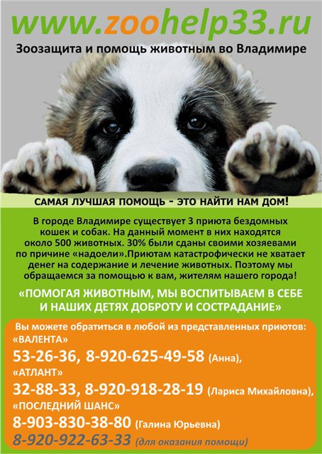 Спасибо Марин, тока на тех листовках нет телефонов приютов((( а мне хочется что-бы все контакты были!