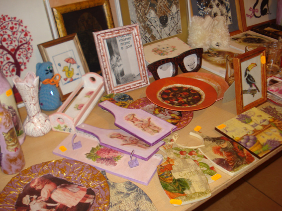 Сегодня один стол для раскладки изделий забыли не привезли и спасибо хозяевам Дома офицеров, что предоставили нам стол из студии детской - большой и удобный.