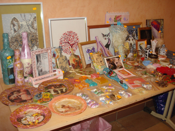 Света, на машине приезжать вечером не надо, я дождусь Алину, она увезет Свете стол, банер и ящик, а остаток изделий в магазинт Твоя-Моя, наверное частично.