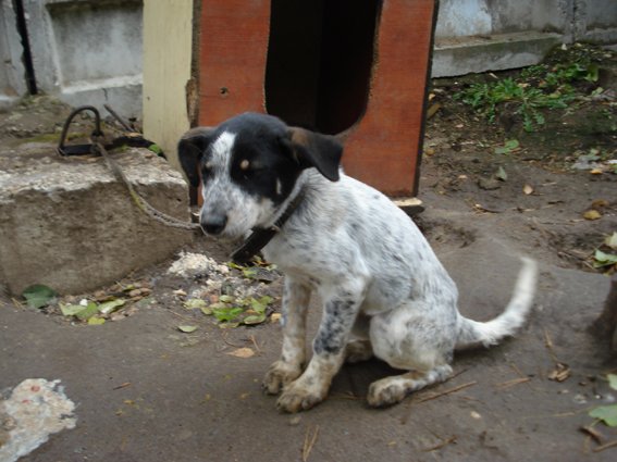Годовалого американского стаффордширского терьера бросили ночью, в лесу, с туго надетым намордником. Подобранный пес находился в состоянии страшнейшего нервного срыва. Прошло долгих четыре месяца ежедневных занятий с кинологом, прежде чем собака снова стала доверять человеку, почувствовала радость совместного общения и превратилась в веселого озорного молодого пса.