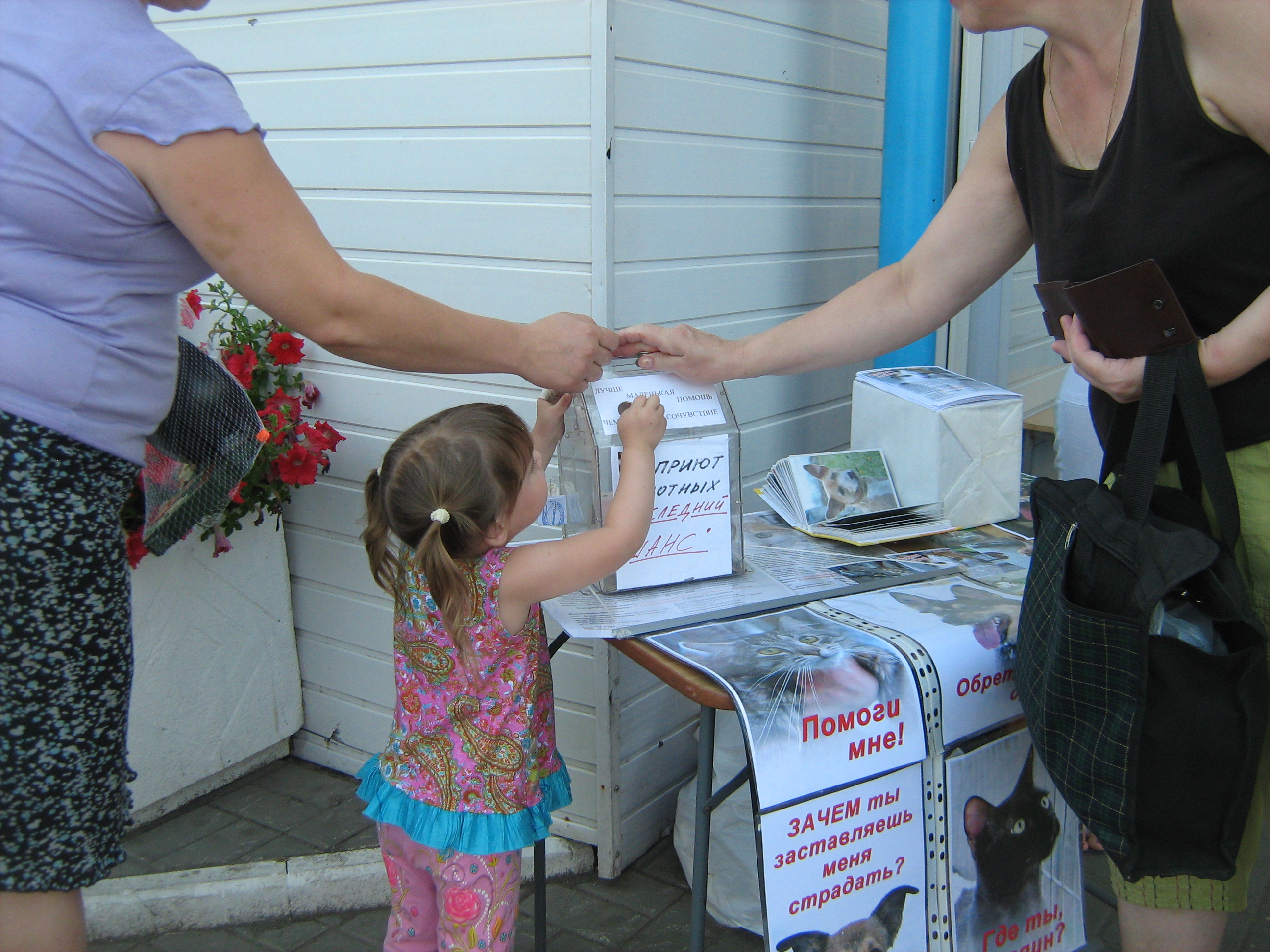 Всего три фотки, так как, как обычно, не до фото... Но самого маленького волонтёра нельзя не заснять. Миланчик сначала скромничал, но как только получила в виде благодарности за листовочки от тёти денежку в 500р., дело пошло с бооольшим энтузиазмом, как будто поняла весомость бумажки :).