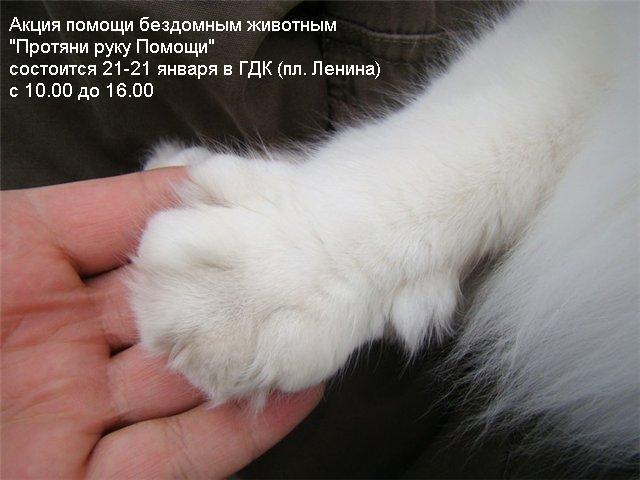 21-22 января 2012 года в ГДК (пл. Ленина) на выставке кошек с 10.00 до 16.00 состоится акция помощи бездомным животным: «Протяни руку ПОМОЩИ»...