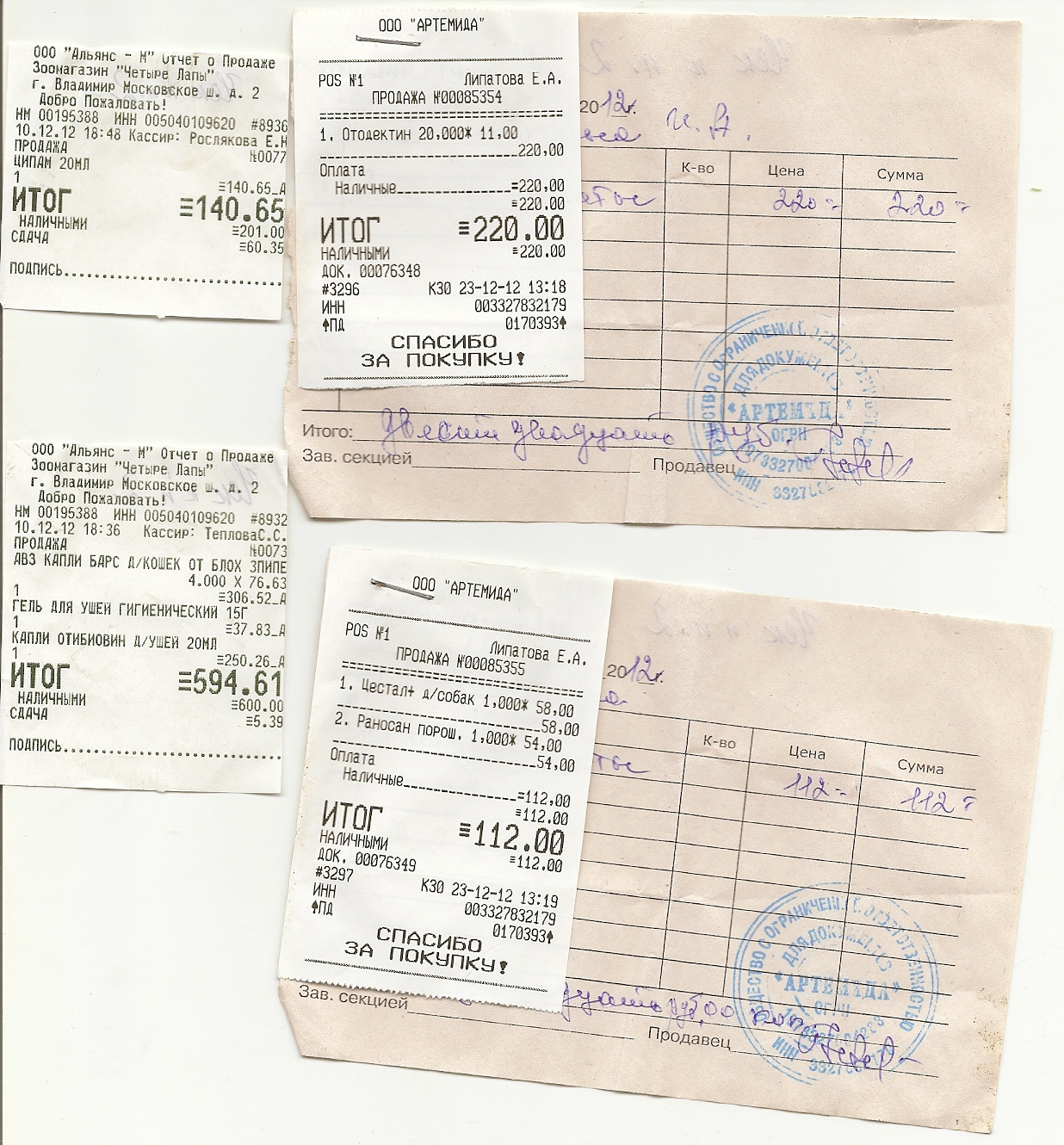 пункт 7. Чек выложен на 3800 р, стерилизация собак на ТЭЦ. Из этой акции было дано 1000 р., другая часть из акций с Политеха 17.10 (viewtopic.php?f=33&t=4704&start=100) и с Атака 27-28 сентября (viewtopic.php?f=33&t=4478&start=90) и с акции 23-24 декабря (viewtopic.php?f=33&t=5801&start=40)
