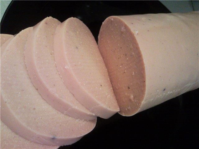 Гороховые хлопья залить четырьмя стаканами горячей воды,и варить 10 минут,помешивая.Чеснок,соль,специи и свекольный сок взбить в блендере ,добавить горячие гороховые хлопья и масло.Взбить до однородной массы.У бутылки срезать верх и залить в неё полученную смесь,быстро охладить.Хранить не более двух дней!!!!На вкус напоминает колбасу!