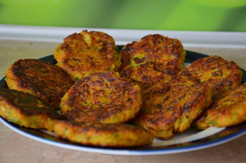 Натереть на крупной терке кабачок, добавить картофель, натертый на средней или мелкой терке, посолить и оставить на несколько минут. Хорошо отжать выделившейся сок и добавить натертые на средней или мелкой терке морковь, а затем майонез, специи (по 1/2 ч. л. или по вкусу) и муку. Досолить и хорошо перемешать. Формировать плоские котлетки и жарить в небольшом количестве масла с двух сторон под закрытой крышкой.