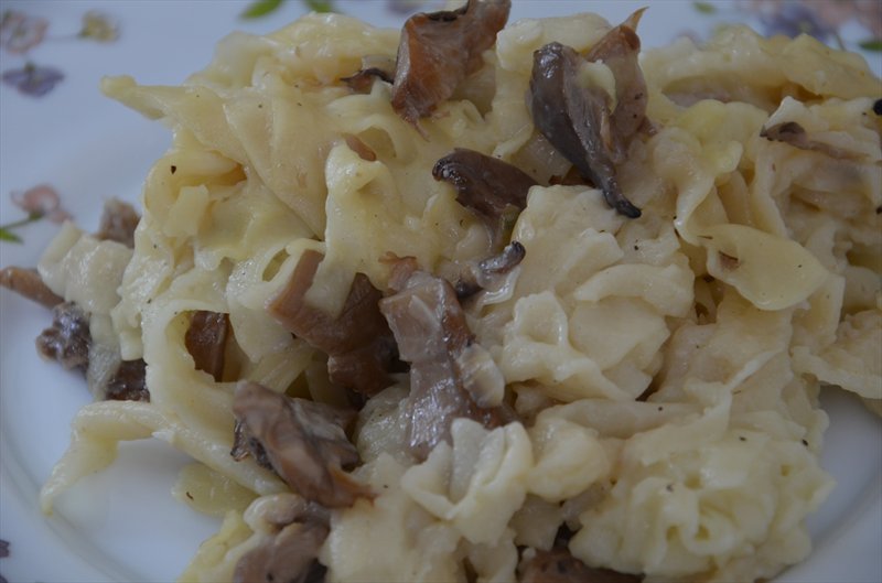 PS: пасту желательно готовить за 5 минут до готовности грибов.