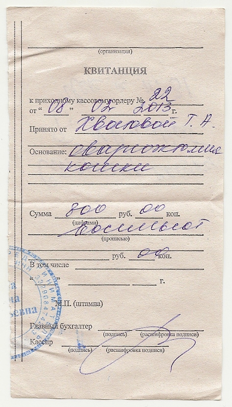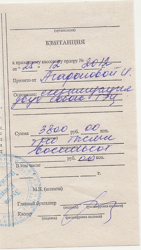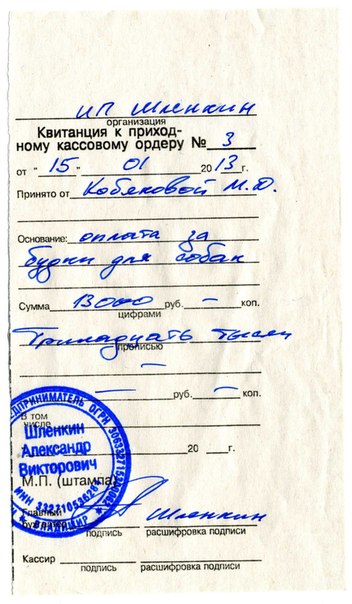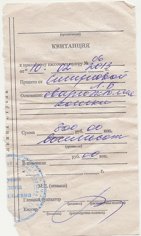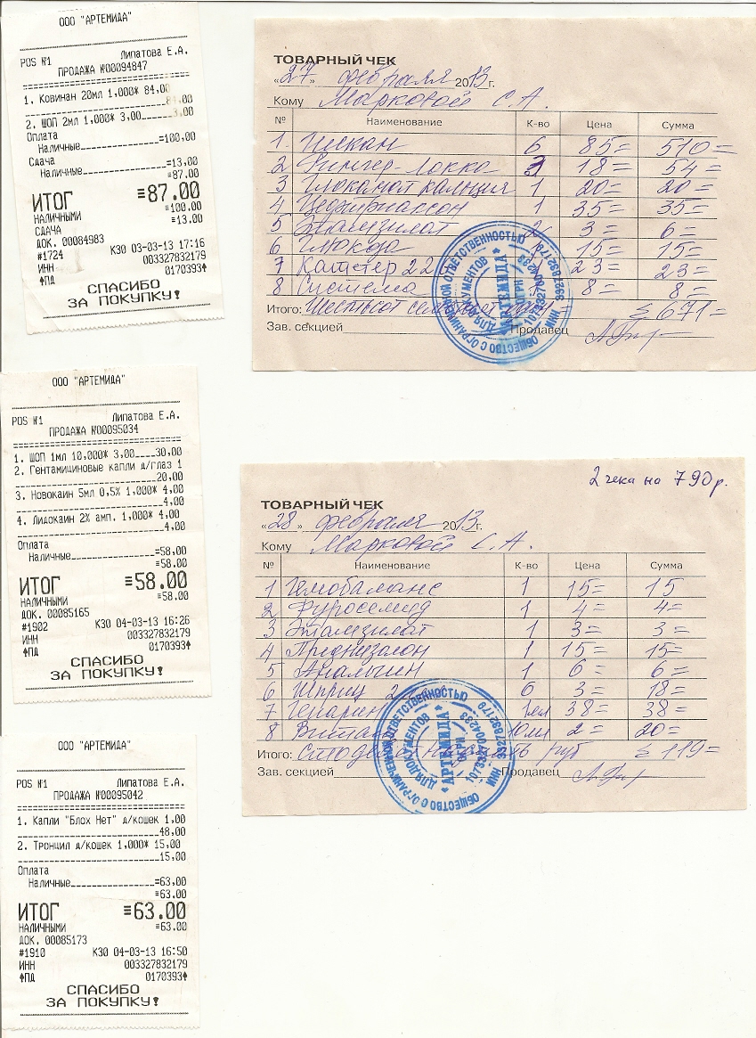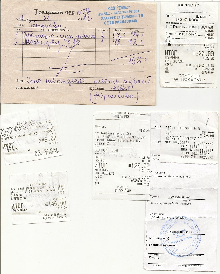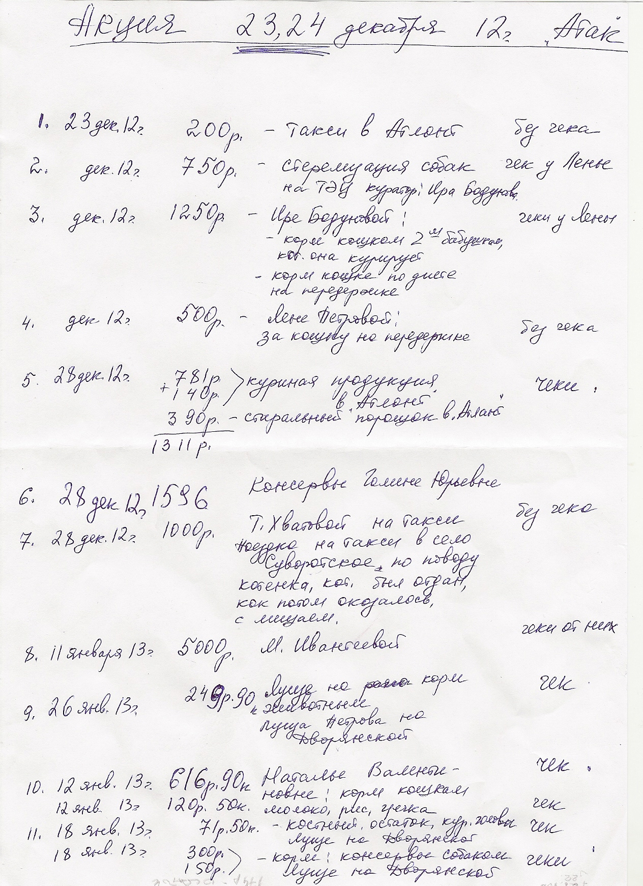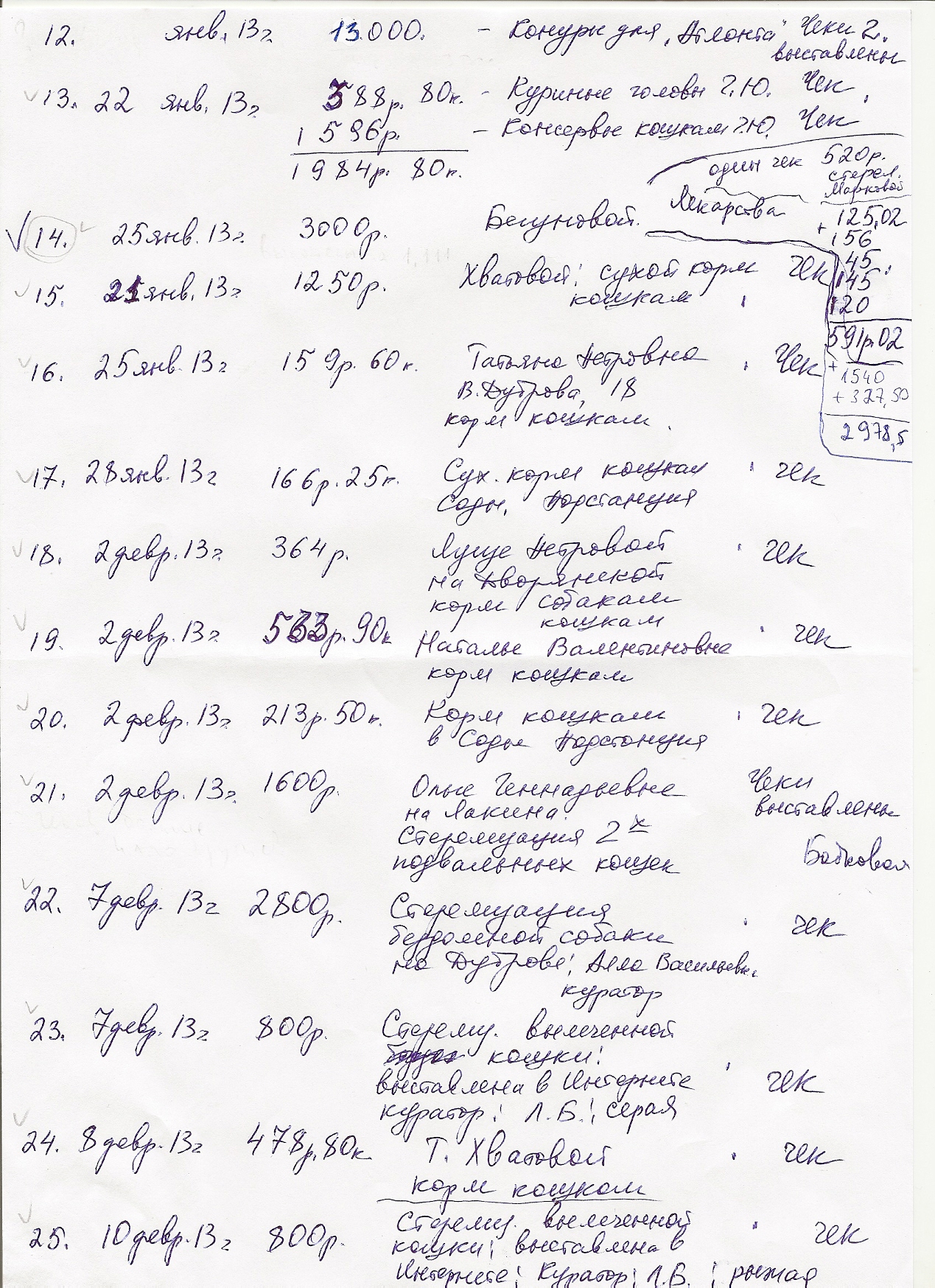 В среду мне Ольга Геннадьевна передала чеки, ЛБ давала ей деньги на лекарства и стерилизацию кошек.