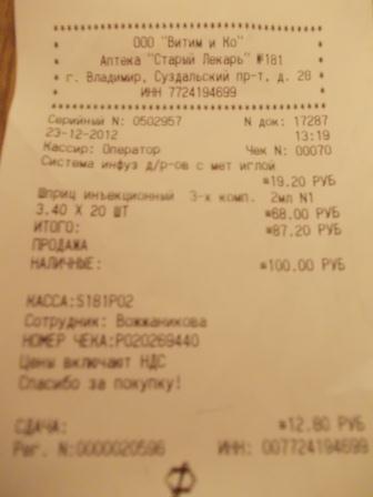 - шприцы 21шт. + системы для капельниц - 98,2руб.