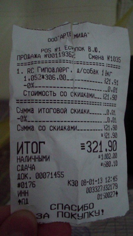 Расход 300руб. - 1кг. корма Роял канин на развес гипоаллергенный