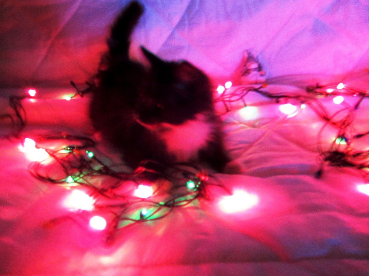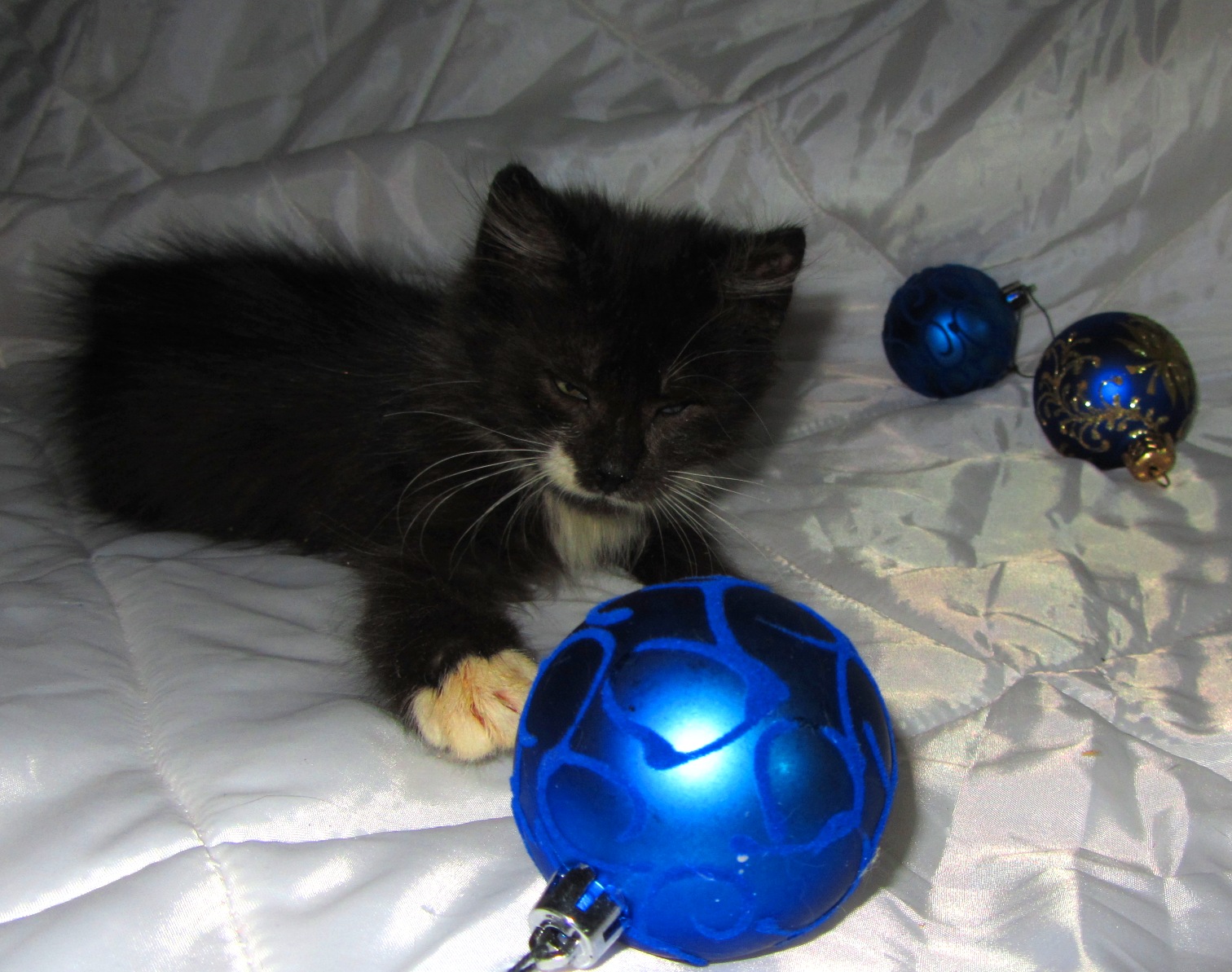 И по поводу фото - я хочу уже сейчас делать фотки - с глазом потому что как сказал офтальмолог больше никаких особых сдвигов не будет,рубец останется но глаз видит. Хочу сделать новогодние фотки. что -то наподобие этой на фоне огоньков, ну что-то такое праздничное с текстом что новый год - это время воплощать мечты в жизнь и что мечта этого котенка обрести дом.