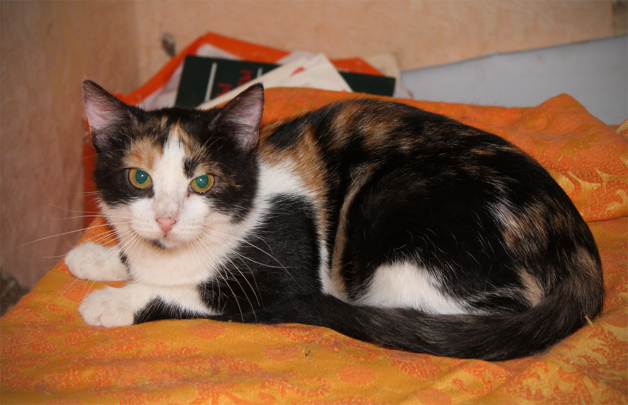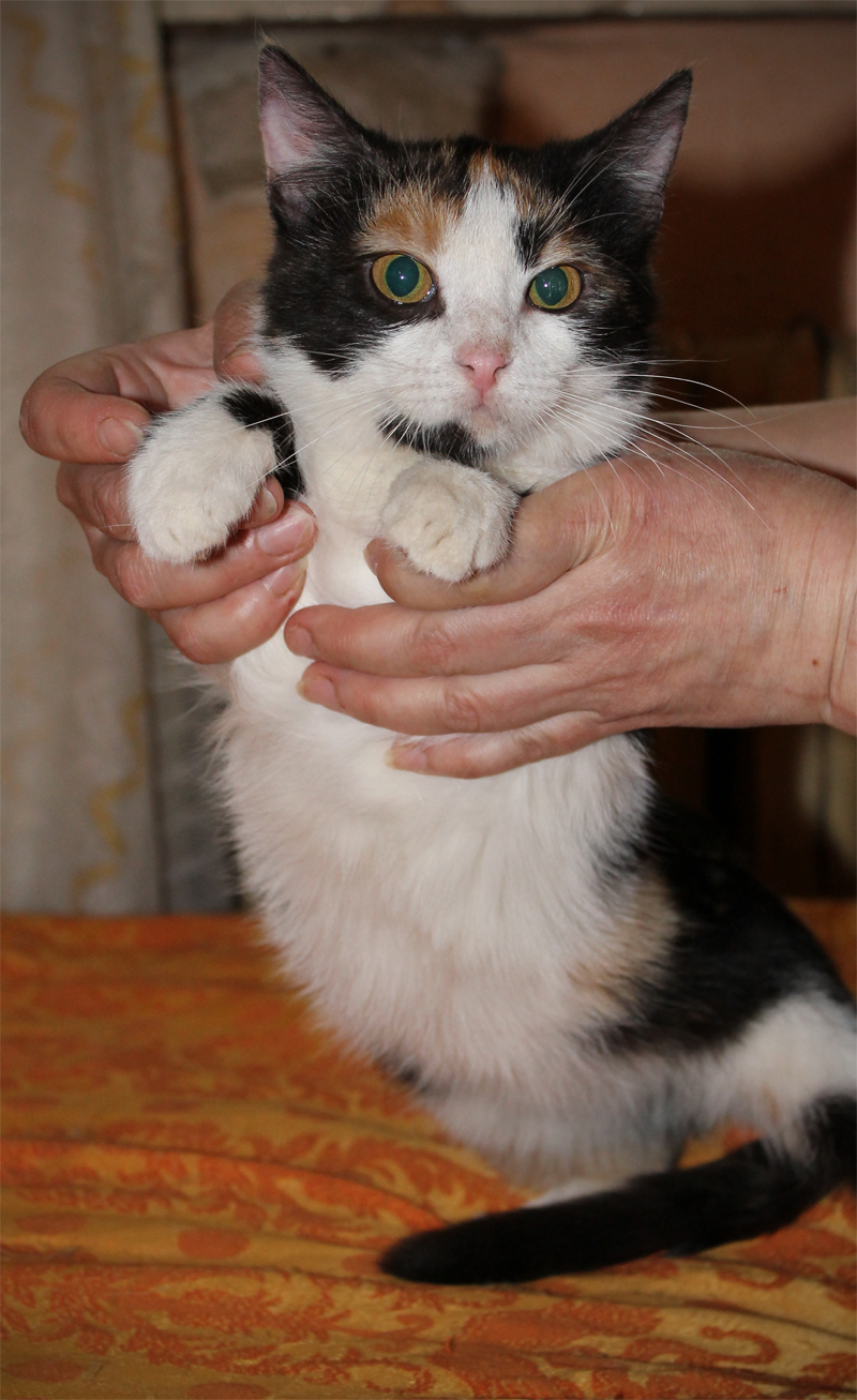 эта трехцветока поступла к Марине малюсеньким котенком. ее сестренка умерла, Марине не удалось ее спасти, а эту лечила лечила и вылечила! у котенка помимо вирусов был лишай. Марина долго ее лечила, откармливала, малышка из страшного зачуханного котенка превратилась в такую красотку! Марина-волшебница!!!