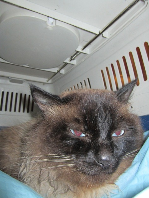 Таец в Валенте сидит в переноске. Шипит. Рычит. Сегодня (спустя сутки) даже не пробовал выбраться сам. Не пьет. Не ест. Огромный (судя по морде лица). Не могу вставить фото. Попробую позже.