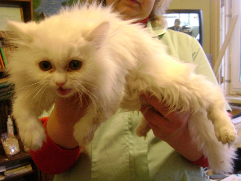 в Валенту принесли на усыпление белого котенка - перса. Причина - кривые передние лапки. Дисплазия это или что-то другое пока не понятно! Каое лечине только после диагностики ясно будет.