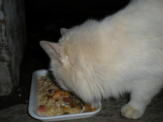Черная в подвале нашего дома, а белый приходит откуда-то. То приходит, то пропадает, то опять приходит:(. В связи с образованием у нас в городе интенсивной группы заинтересованных бабушек, которые просто десятками сдают животных в атлант, все время волнуюсь за этих, они уж больно заметные, так и просятся в руки " Верным друзьям" , ну и все , тогда конец. Честно вот говорю-в Радужном НИ ОДНОЙ бездомной собаки не осталось-всех изничтожили. Теперь дело за кошками