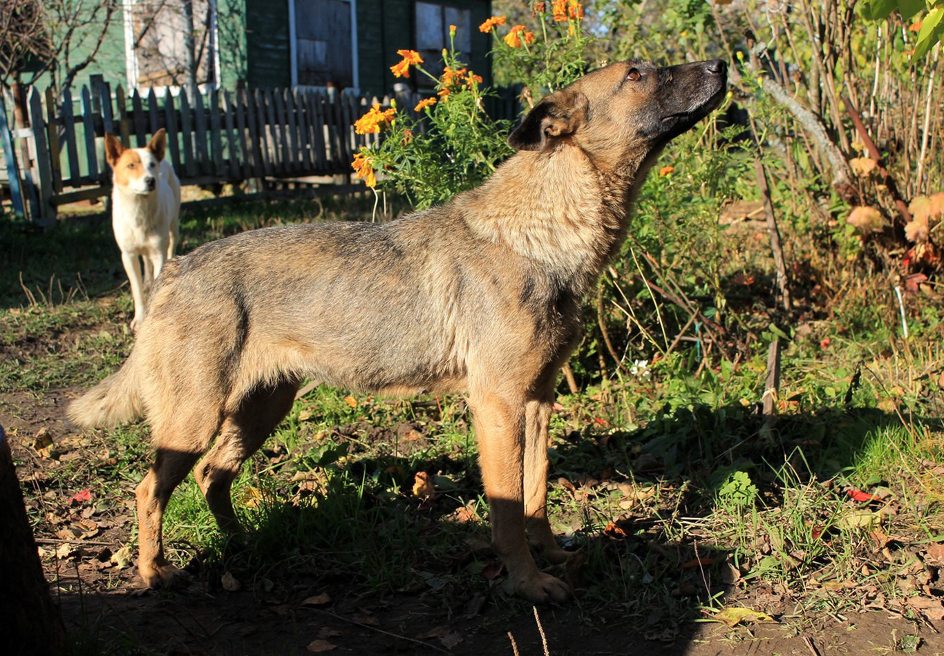 Помесь овчарки, девочка, взрослая ищет хозяев, крупная, подойдет для охраны. Стерилизована.