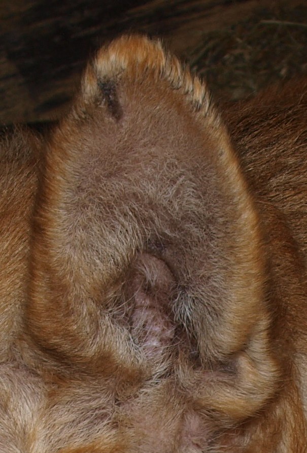 Крупная собака, дворянин, возраст 5 лет, с самого детства боремся с демодекозом! Когда-то взяли его у знакомых, потому что они хотели отдать его жить на стройку, мы пожалели...пузико было намазано зеленкой, нам сказали, что это мошки накусали... мне это сразу показалось странным(((