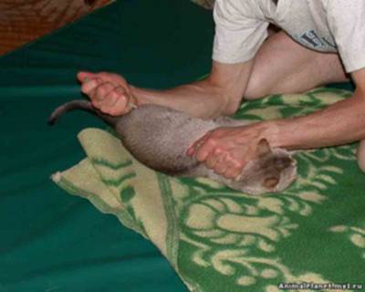 Теперь самое интересное, если у вас есть помощник, то скорее всего все пройдет гораздо быстрее и проще (я, лично, «за» чтобы были помощники, но к сожалению это не всегда возможно). Если укол внутримышечный, то кошака лучше уложить на бок, помощник в это время может чесать кису за ушком (некоторым необходимо разговаривать с животным, хвалить его), главное чтобы помощник держал коту передние лапы. Для начала пробуйте провести эту процедуру без применения какой либо силы…Пока кота держат и уговаривают вы нащупываете на кошачем «окорочке» мягкое место (лучше ближе к хвосту) – помните ощущения от куриного окорочка?…ну вот…именно в это мягкое место необходимо колоть…и медленно вводите лекарство…после укола если пациент не дернул, можете еще успеть слегка помассировать место укола чтобы лекарство лучше разошлось по организму и не возникло всяких разных "шишечек" и уж совсем страшных - абсцессов и прочей межмышечной гадости (не буду морочить голову народу сложными названиями этих бяк, все равно вы их сразу не запомните).