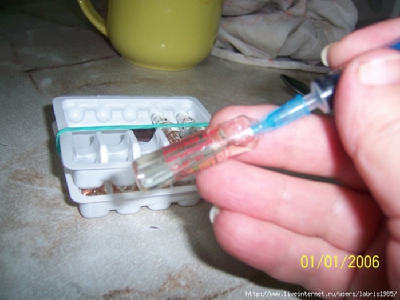 Следующий этап – это набор лекарства. Ампулы с лекарством импортного производства достаточно легко вскрываются без лишних усилий, можно воспользоваться салфеткой или ватным кругляшом, чтобы надломить головку ампулы, с ампулами же российского производителя (тот же Папаверин) могут возникнуть сложности – просто так его не надломить.. для этого в коробочке обычно есть специальное «устройство» с «пилочкой» или «наждачечкой» - надпиливаем головку ампулы и отламываем кончик. Берем шприц и медленно набираем лекарство нужное количество (набирать следует на 0, 1 мл больше, поскольку часть лекарства выйдет при выпуске воздуха). Набрали? Переверните шприц и посмотрите – в нем не должно быть пузыриков воздуха (а они там будут, уж поверьте), поэтому избавляемся от них - слегка встряхните шприц, можно легкими щелчками по нему постучать – пузырики будут подниматься вверх. Выпускаем воздух до момента пока лекарство не брызнет из иглы (оставляем лекарства ровно столько сколько прописано врачом – сказано 0, 7 мл, стало быть, там и должно остаться 0, 7, а не 0, 8).