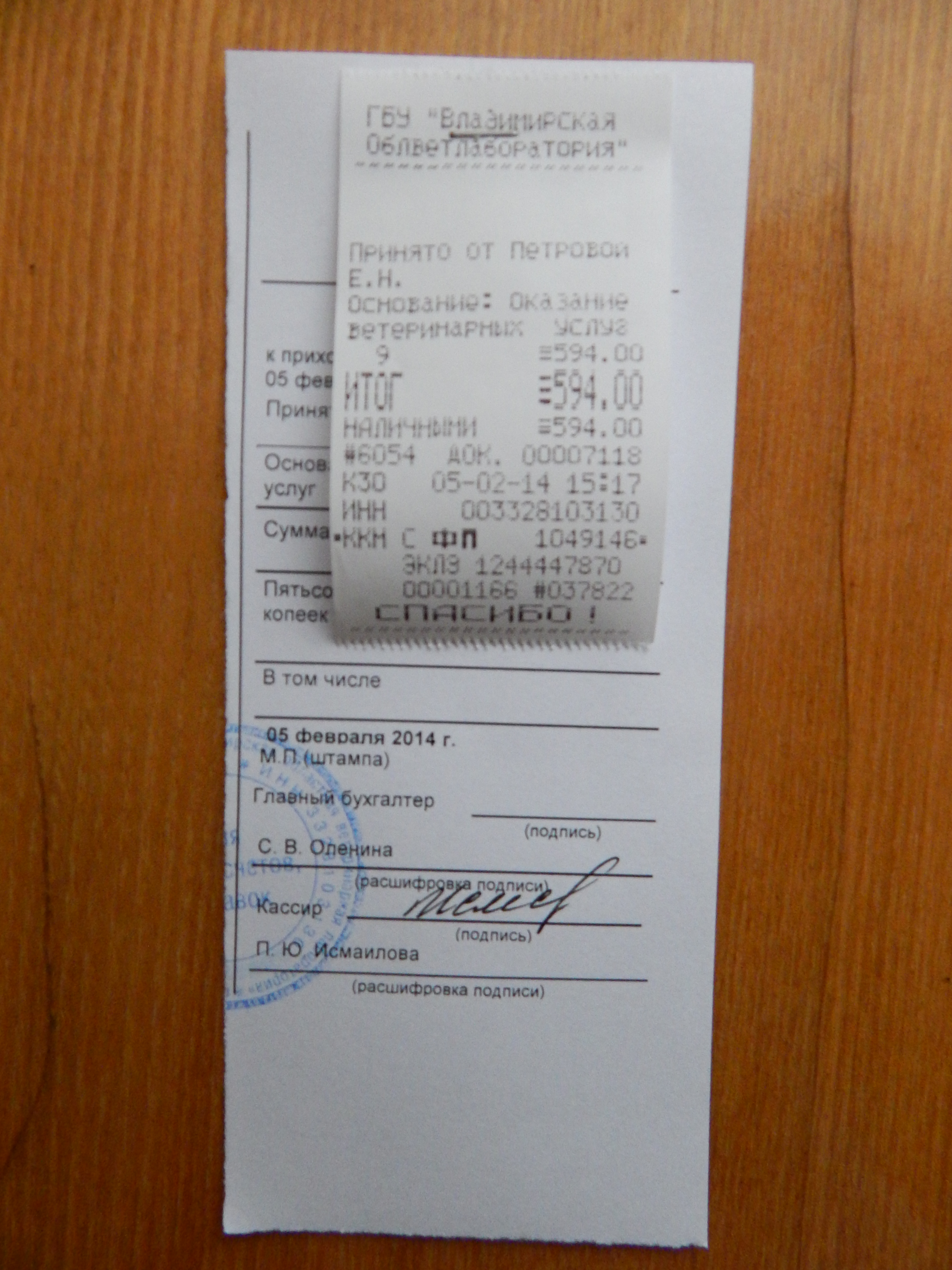 Марин, 594 это за 2 анализа, один Юли Прелесть за домашнего кота. За него она сама заплатила. За своего у меня было как раз 300 рублей от 500, которые ты передавала с сайта.