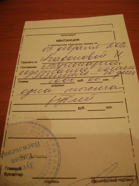 Ира, сегодня когда мы были в стационаре, приезжала Лена (Ленусик) и оплатила стационар за Мишель. Чек выставляю.
