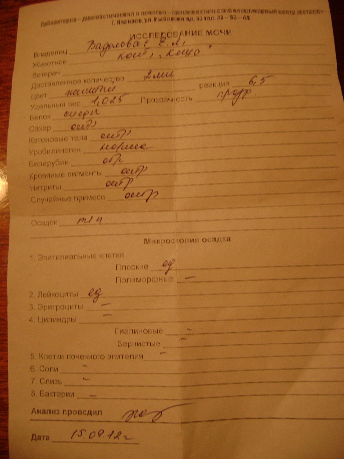 Кеша ездил в Иваново сдавать анализы мочи. Чек и результат анализа.