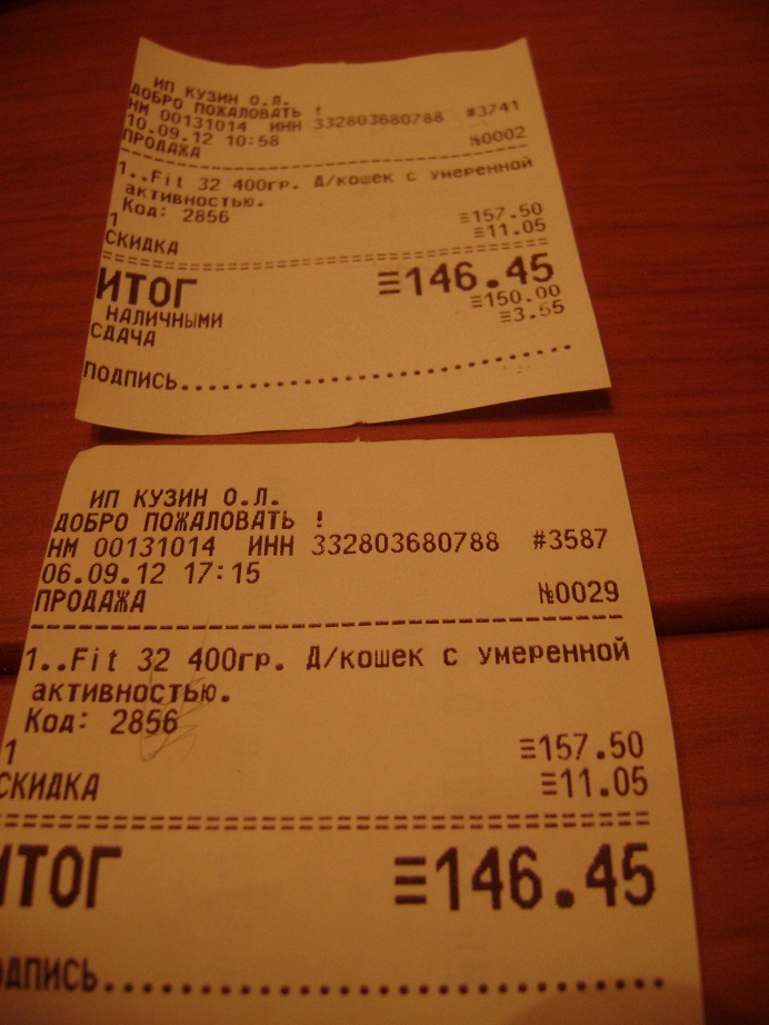 Чеки от Лены (предыдущие), когда не кормом а деньгами передавала (собачий корм не учитывать