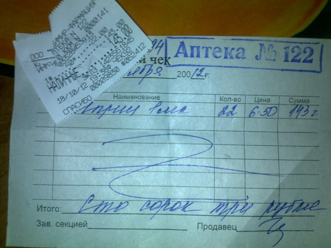 18.10.12 - 143 руб. - шприц одноразовый 1 мл. - 22 шт.