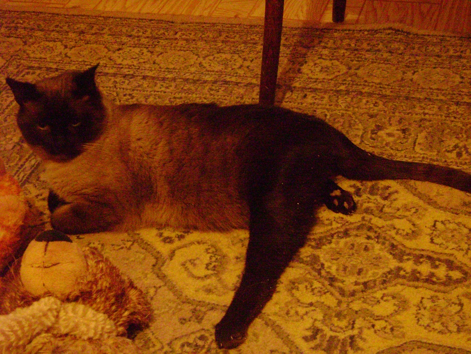Вчера была у Лены. Кешандрий - шерсть лоснится, холеный (т-т-т, чтоб не сглазить). Со всеми обитателями в доме очень дружелюбен (даже с Мирой).
