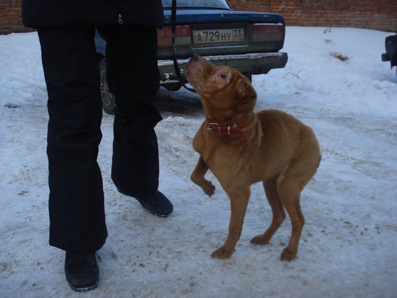 Мы освободили весь проход (там люди на прием в клинику Валента сидели - прямо очередь), застращали, сейчас мол собака выйти должна, пусть своих уберут собак.
