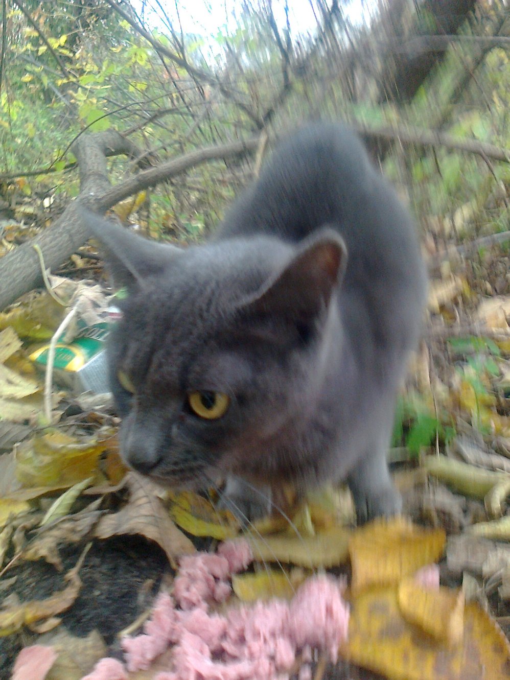 Раньше на этом месте стоял частный дом. Где-то весной его сломали, жильцы переехали. Я подозреваю, что этот кот жил в этом доме, а после он так и обитал всё лето на его обломках – в надежде, что хозяева за ним придут.