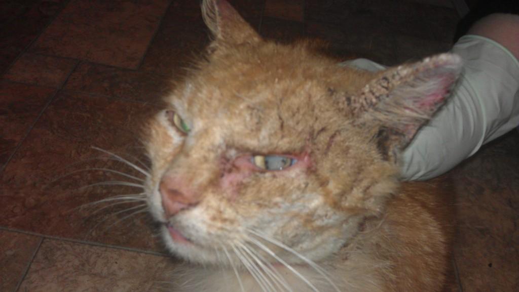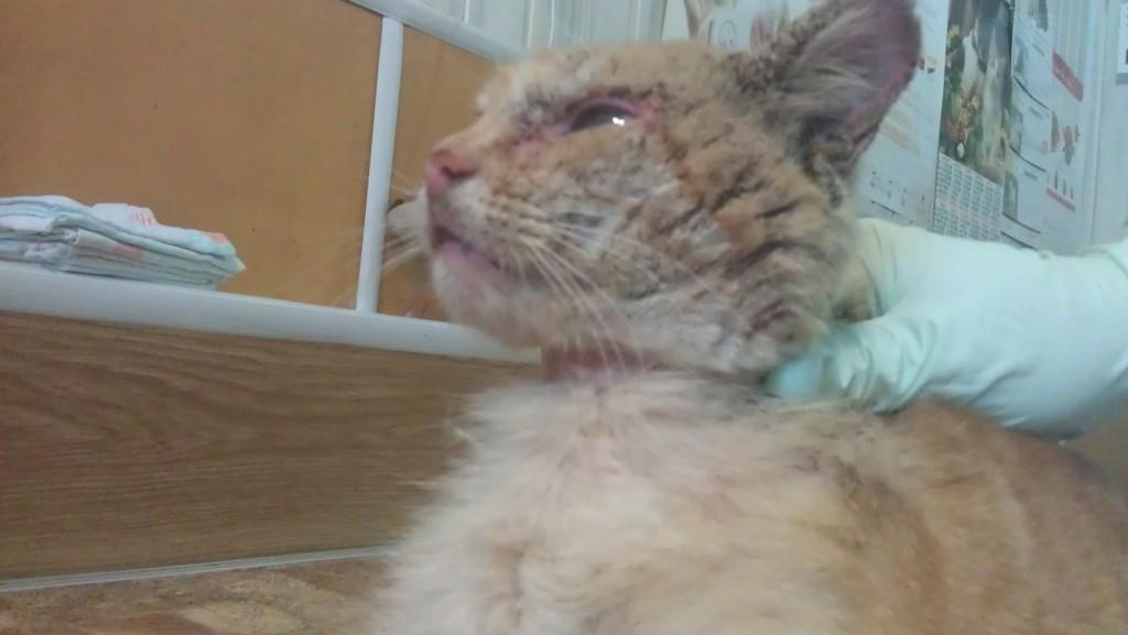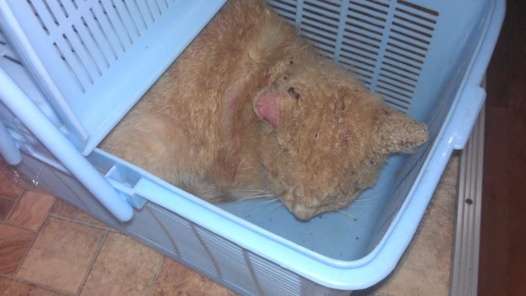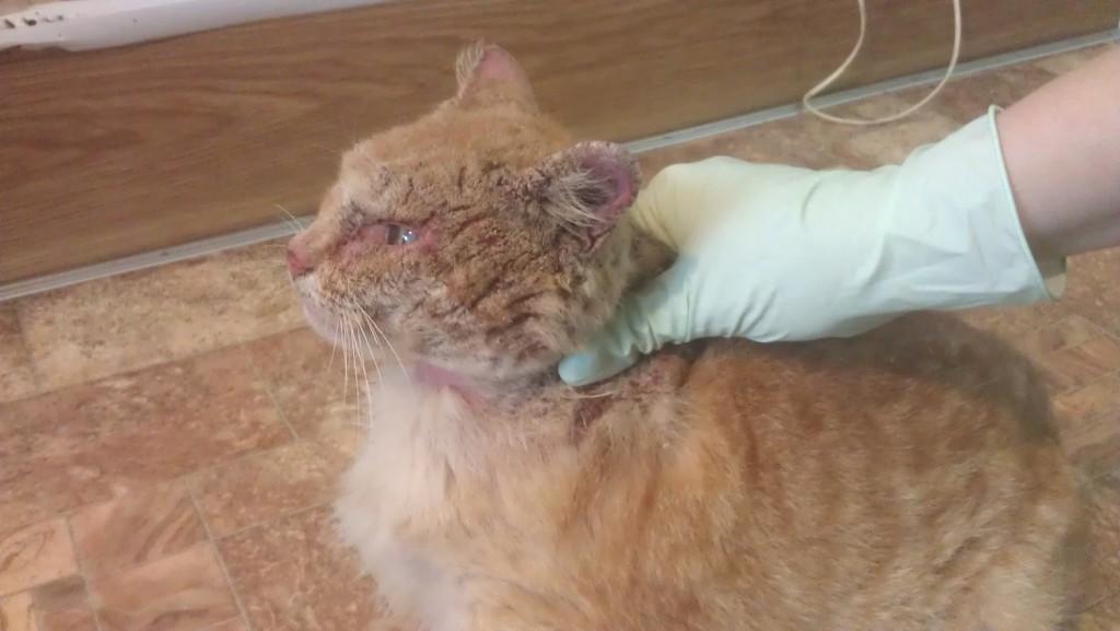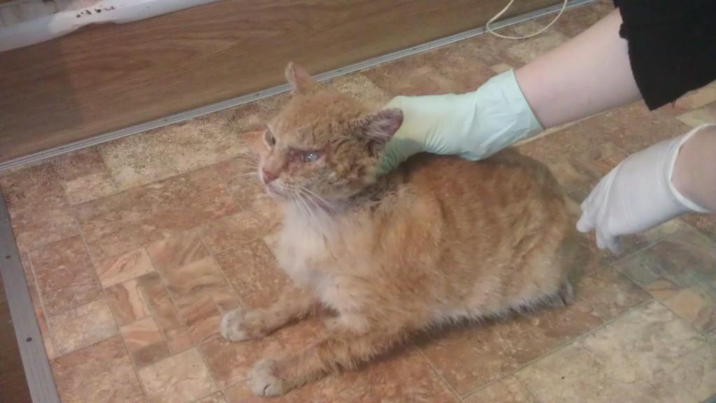 г.Владимир. SOS!!!СРОЧНО НУЖНА ПОМОЩЬ НА ЛЕЧЕНИЕ КОТУ!!! Рыжик,рыжий как огонь,сидел около машины в луже воды,даже уже не поджимал лапы от холода-сил уже не осталось.Рыжик полностью поражен чесоткой!!!На голове и шее,уже кровавые корки,трещины до мяса,лапы тоже уже поражены и тоже в кровь.ОЧЕНЬ НУЖНЫ ФИНАНСЫ НА ОПЛАТУ ЛЕЧЕНИЯ. В данный момент кот на платном стационаре. Ему также нужно качественное питание.