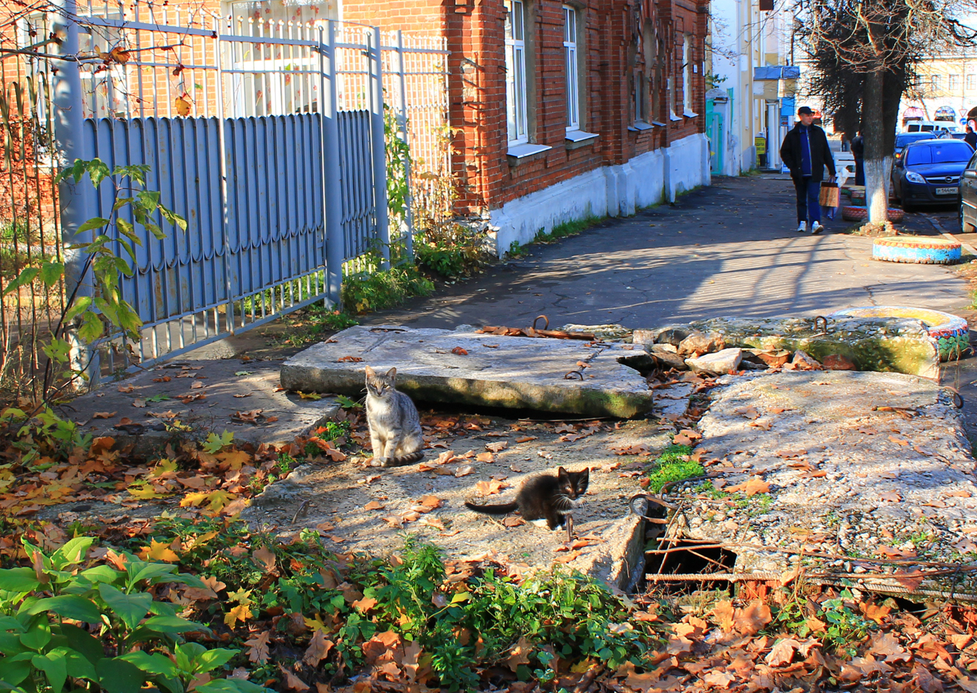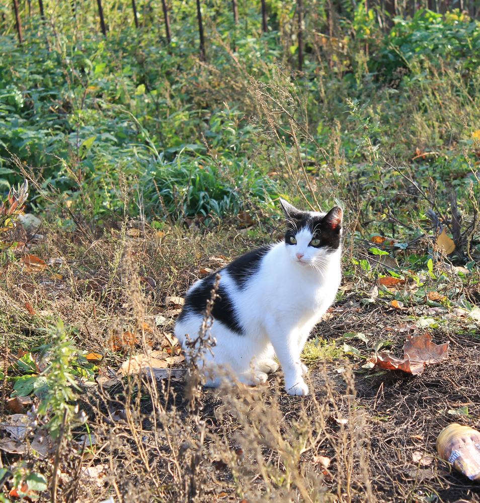 А черно-белая недалеко от патриарших садов, рядом с церковью. А может и тоже из той дыры, вышла погулять. какой то кошках рядом гулять, но убежал.