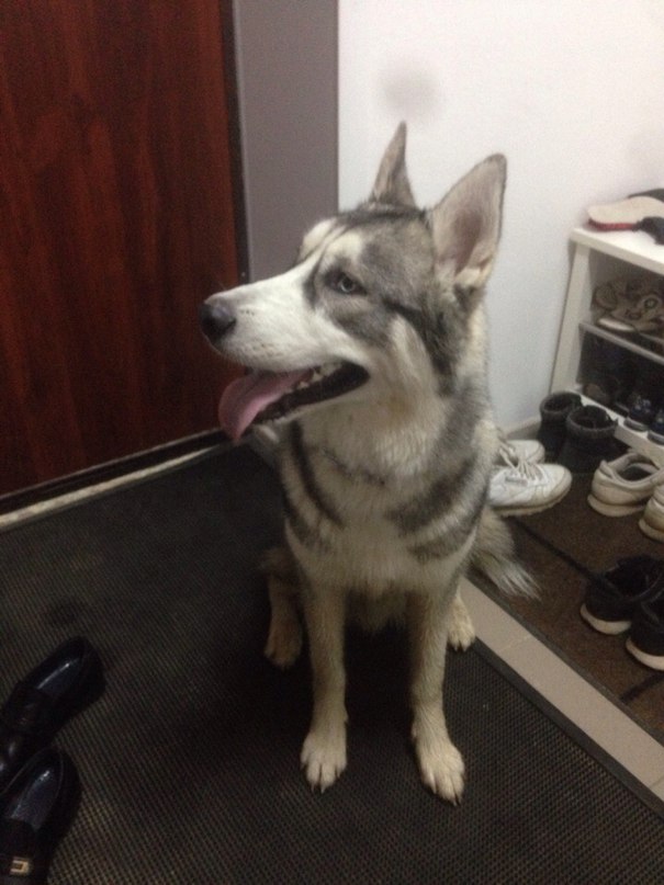 Найден пес, предположительно хаски. На шее строгач.3-я кольцевая. 9101818918 Руслан.