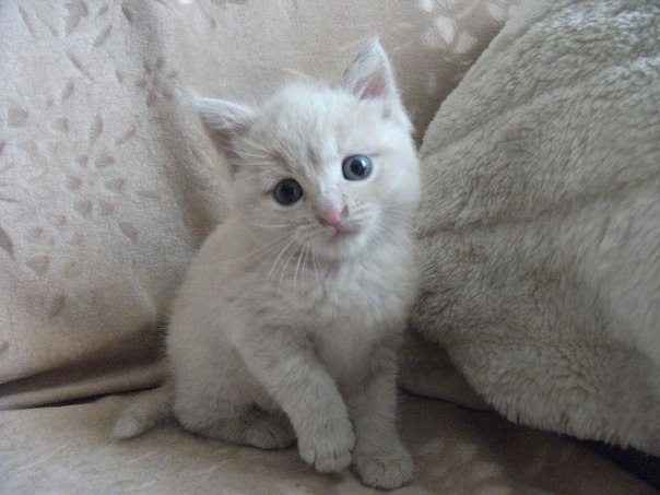 "Помогите найти котенку хозяев! Мальчик, светло-рыжий окрас, (похож на ряженку, зовем Кефиром). Возраст - примерно месяц; игривый, помыт, в порядок приведен, глазки чистые. Подбросили несколько дней назад, у себя оставить не можем никак!"