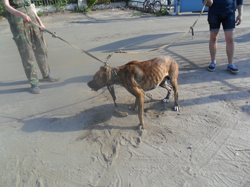 Пса перевезли. Под транквилизаторами. кусался. теперь сидит в питомнике на передержке. оплачено до вторника. отдается только в опытные руки. в стрессе.