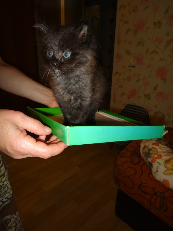 Ласковая, пушистая и черная, как смоль, малютка-кошечка ищет заботливые ручки! Ей всего 2 месяца и она приучена к лотку. У нее, как и у большинства бездомных животных, своя нелегкая история жизни, но голод, холод и трагическая потеря мамы-кошки уже позади. Добрые люди взяли себе котенка на передержку (хотя у самих 3 кота в квартире), сейчас она накормлена и вылечена. Поиграет фантиком, помурчит нежности на своем кошачьем, да уляжется рядышком для компании. Очень надеется обрести свой постоянный дом и самых лучших хозяев!
