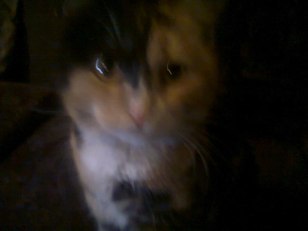 Кошка Машка ищет хозяина или хозяйку. Себе взять не могу, у жены аллергия на кошаков. Живёт у меня на работе. Шеф просит водителей увезти её куда-то в Мелехово на карьер. А там ей не жить, хромая на переднюю левую лапу. Жила у коллеги, пока не упала с 7 этажа. Видимо, больная кошка ему была не нужна и отправилась в подсобку. Окрас: черепаховый с белым. Считается, что четырёхцветные кошки приносят удачу. Возраст: меньше года. Жизней: 8. Очень общительная и игривая. т. 8(904)596-51-73