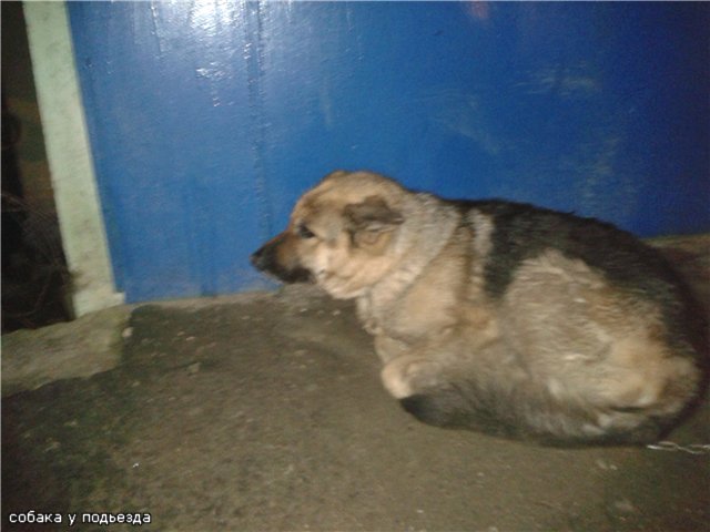 Забрала девушка из соседнего подъезда, она сама гуляла со своей овчаркой. взяла себе на время, если ее знакомые не возьмут, то девушка, которая рассказала про собаку, предложит своим 2 знакомым.