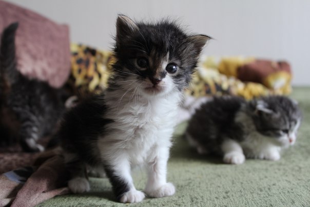 Этих малышей подбросили мне во двор совсем малютками,а сейчас они подросли!Очень добрые и веселые=)Мальчик и две девочки.Возраст примерно месяц.