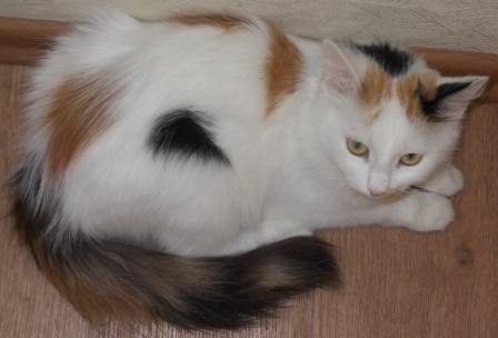 Отдаю маленькую кошечку, 6 месяцев, в хорошие ручки. Лана имеет очень редкий окрас, ее шерстка настоящая палитра ярких пятен. По поверию такие кошки приносят удачу. К лотку приучена, в еде не привередлива.