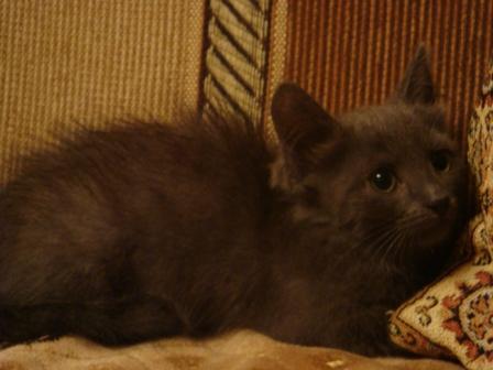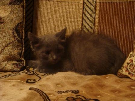 Сегодня поехали за оставшимися котятами, но к сожалению выловить удалось только одного (как раз того кого надо), причем сразу же, это чудо какое-то. Искусал меня, исцарапал, а ореву, клетка треслась, я думала он её выломает. Но домой принесли намыли шампунем от блох, он притих, в глаза заглядывает. Но не совсем короткошерстный, похоже он средней пушистости, боюсь как бы эта девушка Лена не отказалась, они с мамой без ума от русской голубой породы.