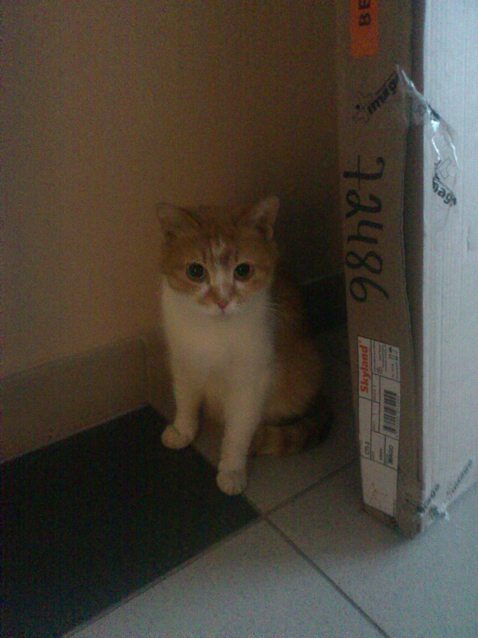 Пишу апдейт по кошечке. Сегодня забежала к нам в офис, явно чуть похудевшая и уже родившая. Как оказалось, родила она в соседнем строительном магазине за стеной нашего офиса). Работница магазина пустила ее на ночь, там она и родила. Ходили смотреть на нее и на котят. Котят - четверо, один трехцветный - его уже собираются забрать, трое - почти полностью рыженькие с беленьким, пока непристроенные. Выкладываю фото кошки и котят (фотографии получились не очень), возможно, кто-то захочет их взять или пристроить)