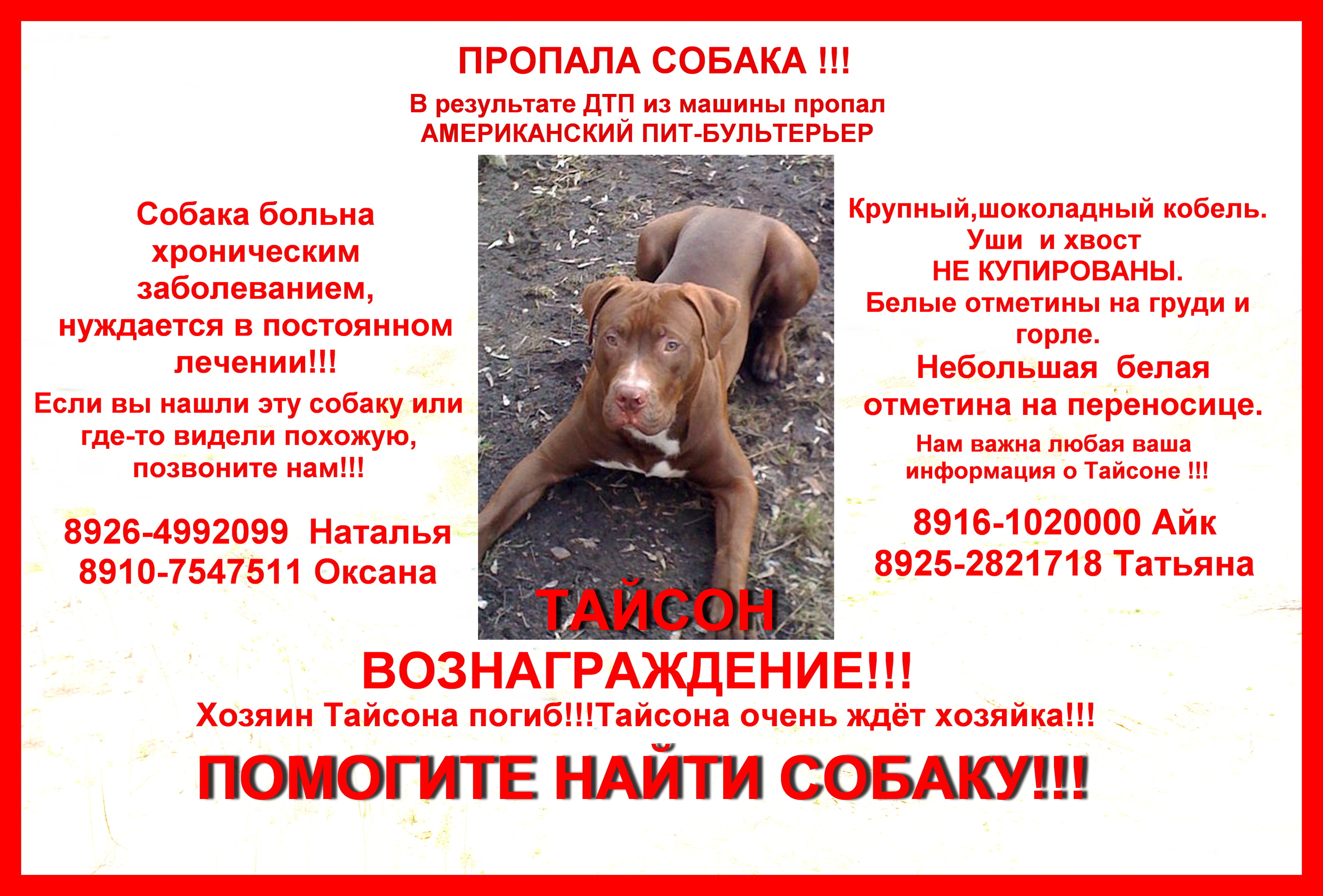 Re: в результате ДТП пропала собака, пит буль
