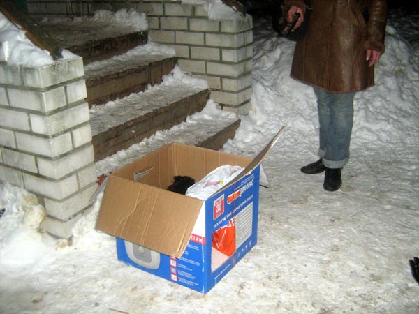 Вот так это бывает... В конце дня, когда работники уходят домой.., вдруг у крыльца появляется коробка, с первого взгляда казалось с кормом, но, оказывается, ещё и с другими подарками...