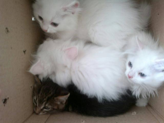 Пожалуйста, поспрашивайте по знакомым. Белые котятам в приюте очень трудно выжить, к ним всегда что-нибудь прилипаетв в перую очередь. И, конечно, полосатика, пока маленький, надо пристроить!