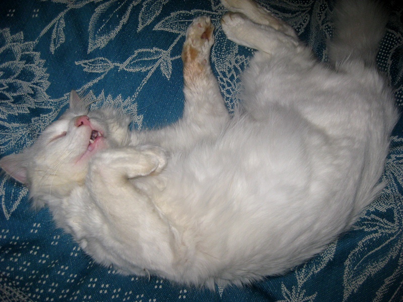 P.S. Решили поделиться видом спящего Каса :lol: Он так смешно спит...на спине...с открытым ртом...иногда язык высовывает...и причмокивает иногда)))))))))))))