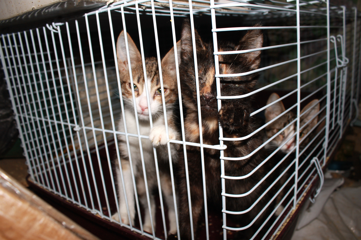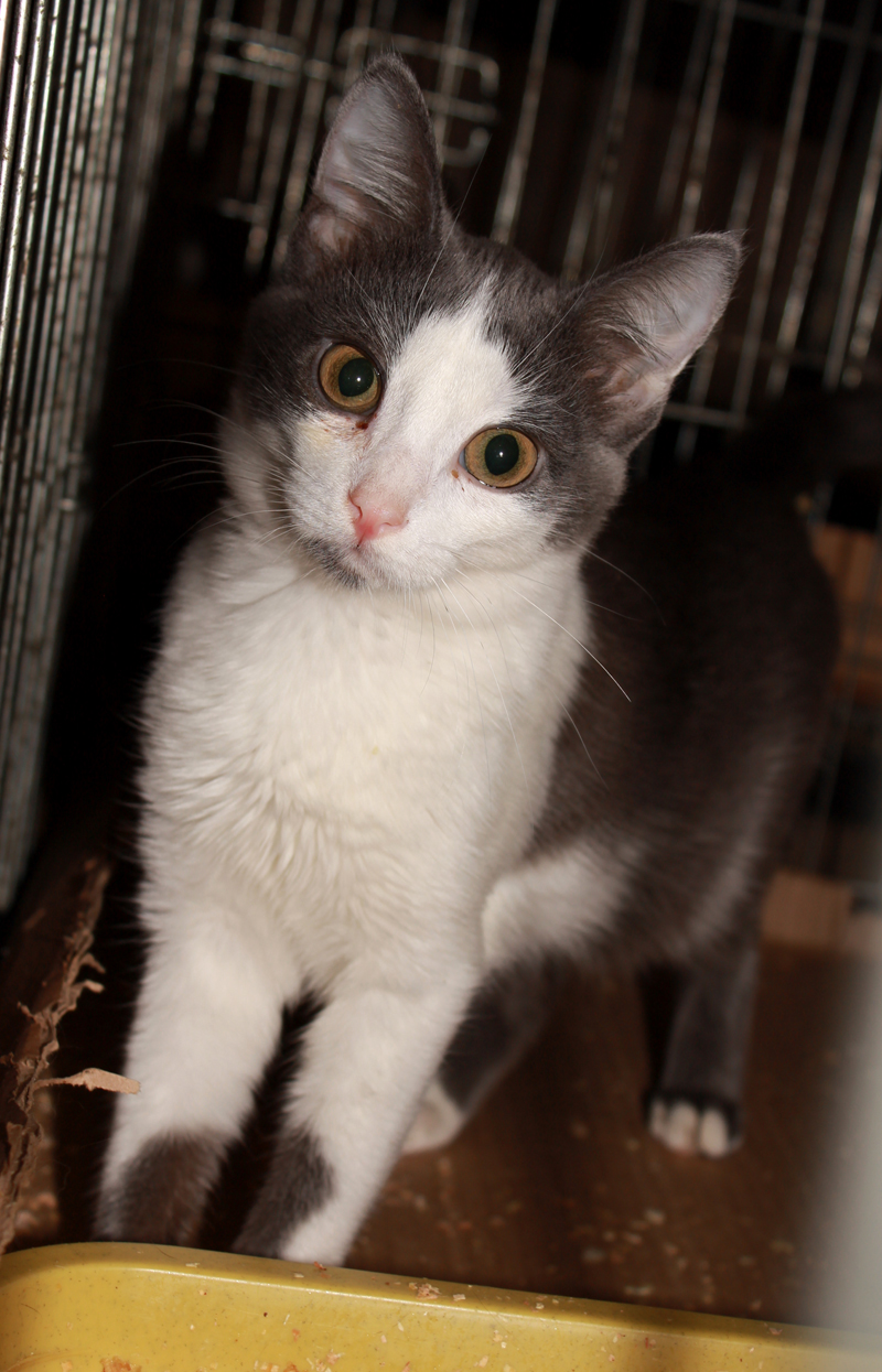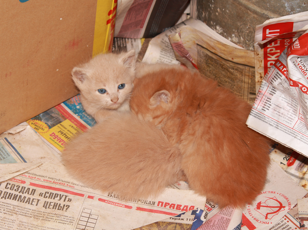 Котятки, 3,5 месяца. шубутные, готовы клетку перевернуть! но как стали фоткать, сразу застеснялись, получились испуганными, страшненькими).