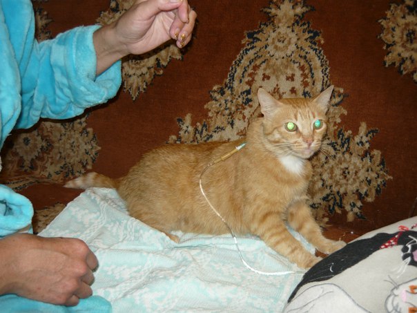 А сегодня часов в 5 проснулась от звука кошачьей рвоты. У Рыжки опять открылась какая-то неудержимая врота (потом посчитала - раз 10). Первая порция была едой, потом слюной. При этом она периодически орала - видно больно было (просто кошмар какой-то! ), вспомнила про рекомендацию врачей на форуме при обезболивании и при неудержимых вротах делать укол папаверина - сделала 0, 5 мл подкожно. Рвота вроде прекратилась, она забилась под диван и там лежала. Утром (часов в 8) я ее из под дивана вытащила, сделала ей капельницу 100 мл под холку Рингера - Локка. Сейчас она на диване лежит - спит. Пока не лекарства, ни пищу не даю, в животе у нее урчит, может из-за того, что пустой?