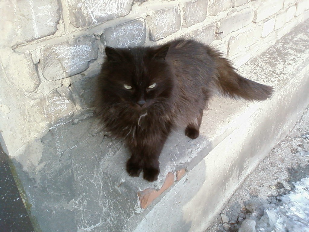 Её подкармливают около дома, но один мужик-алкаш, постоянно пинает кошку, как только увидит