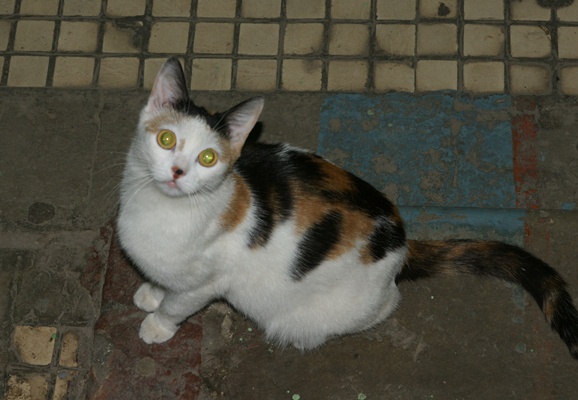 Сфоткала Кису, никак не хотела позировать, все время ласкалась, терлась об ноги. Рядом около нее терся какой-то кот, видимо глубоко загулявший, орал на весь подъезд. Киса его от себя отгоняла.